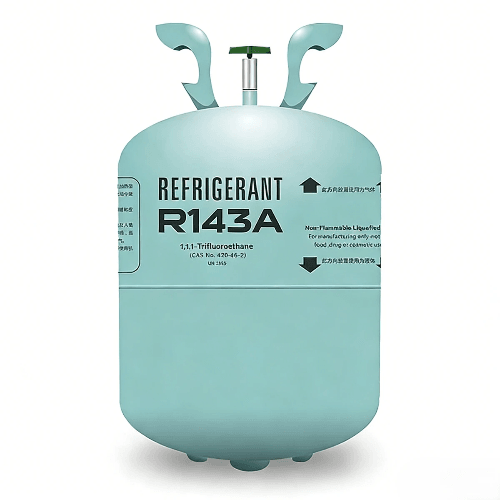 R143a (trifluoroethane) is a flammable (A2), high-GWP (4470) refrigerant. It is not used alone but as a key component in commercial blends like R404A/R507A to provide capacity and stability. Due to its severe environmental impact, it is being phased out globally.